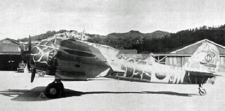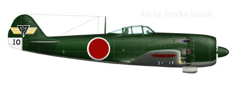 fortsetzte. Persönliche Markierungen nur in Einzelfällen, nicht allgemein üblich. Ein senkrechtes Band zwischen Hoheitsabzeichen und Höhenleitwerk (sog. "Kampfband") zeigte an, dass es sich um ein Flugzeug einer kämpfenden Einheit handelte. Ein oder zwei weitere die Führungseigenschaft innerhalb der Sentai oder Chutai. Zur leichteren Erkennung eigener Maschinen führten Jagdflugzeuge einen orangegelben Streifen an der Tragflächenvorderkante (Länge ca. 1/3 Spannweite), der sogar von einigen Sentais mit mehrmotorigen Maschinen übernommen wurde. |