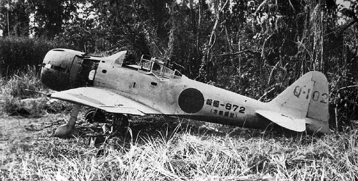 A6M-3 Zero (alliierter Codename "Hamp") 1943 auf Lae, Neuguinea, verlassen vorgefunden G4M2 (alliierter Codename "Betty") 1945 auf "Clark Field, Manila, verlassen vorgefunden