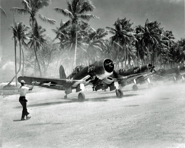 | Karte US NAVY 1942 | F4U-1A Corsair der VMF-224 des US Marine Corps, am Start zu "Aufräumungsarbeiten", Anfang 1944 |