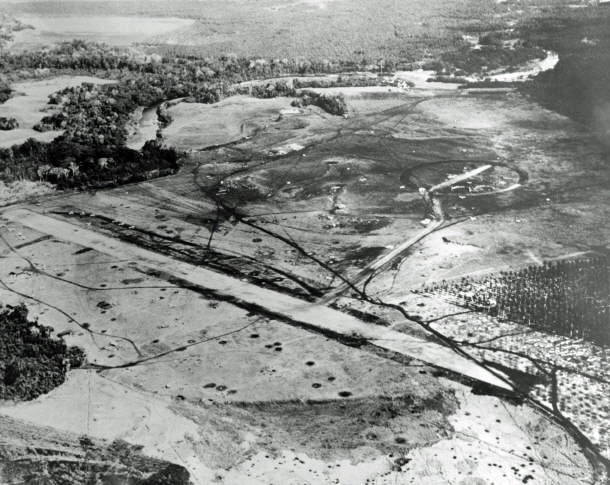 | Guadalcanal, Flugplatz Henderson Field, Aug. 1942 | Henderson Field mit F4F Wildcat Jägern und TBF-1 Avenger Torpedobombern, alle USMC | |||||