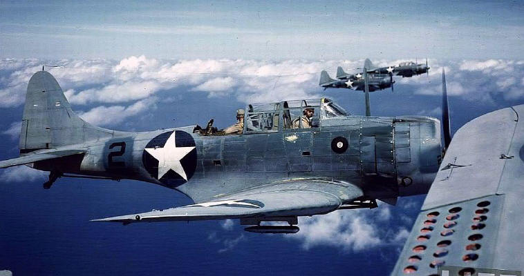 | SBD Dauntless photo via ww2db | P-40N Warhawk photo via ww2db |