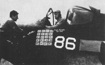 In the absence of appropriate air battles and thus kill opportunities, kill markings were rare. Only "Pappy" Boyington achieved a certain popularity with his VMF-214 (the "M" in the squadron designation stands for "Marines"), although strictly speaking, the VMF-214's mission was "merely" to decimate remnants of Japanese aircraft on Rabaul; the majority of his kills had been achieved before the war in China. |