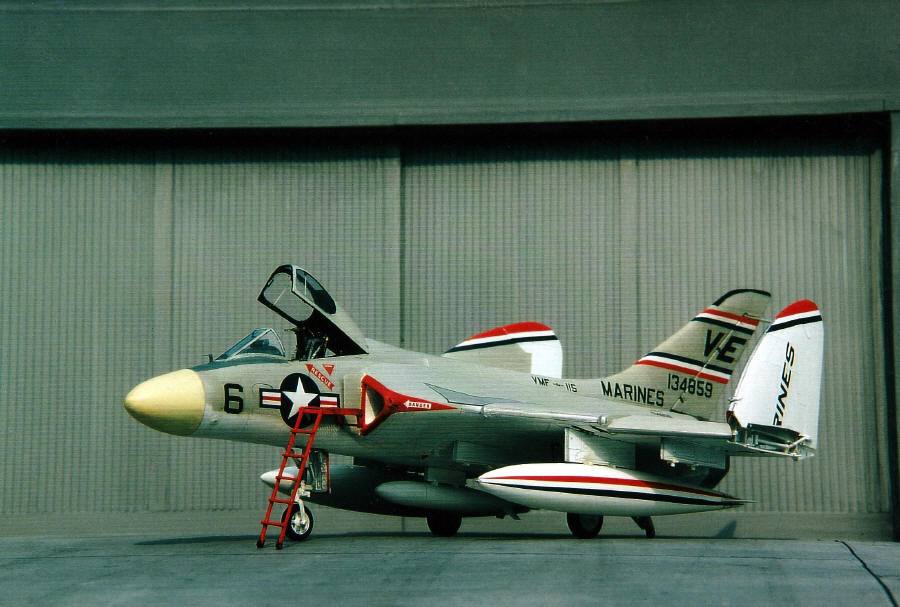 | Veränderungen am Bausatz: Tragflächen-Hinterkanten dünn geschliffen. Grenzschichtzäune durch Metallteile (aus Rasierklinge) ersetzt; Pilotenfigur, Schleudersitz und Cockpithaube Eigenbau. Detailierung überarbeitet (leider immer noch zu grob). Treibstoffablassrohr durch Röhrchen aus gezogenem Wattestäbchen ersetzt. Staurohr aus Draht. | |