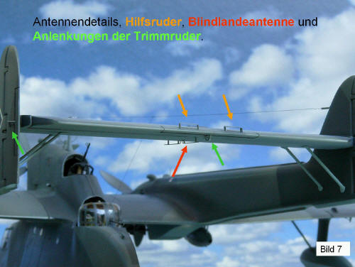 Höhenleitwerk, das durch Blindlandeantenne und die beiden Hilfsruder ergänzt