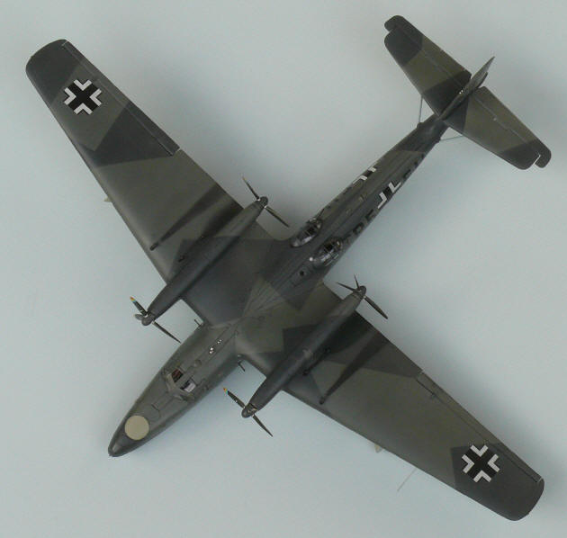 Das als Transatlantik-Passagierflugzeug gebaute Flugboot Dornier Do 26 mit seinen eleganten Möwenflügeln wurde nach kurzer ziviler Nutzung umgebaut und nur noch militärisch eingesetzt. Vorbild des im Folgenden beschriebenen Modells war die 5. Maschine mit der Kennung P5+EH: Erstflug am 24.4.1940, Totalverlust am 11.10 1940 wegen Motoraussetzern beim Katapultstart von der „Friesland“.