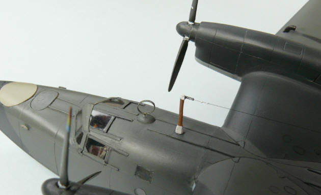 Peilantenne, Schleppantenne und Propellerdetails. Unter den Tragflächenvorderkanten befindet sich an jeder