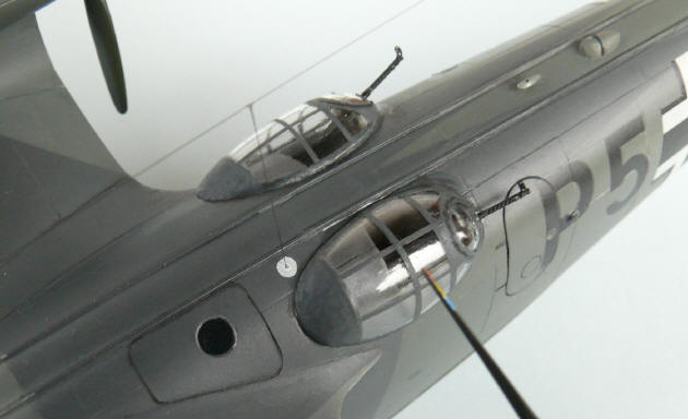 Das Modell gibt das Vorbild ohne Waffenturm wieder, das auf Fotos von Probeflügen der P5+DH die kreisförmige Abdeckung vor dem Cockpit zeigt (Bilder 5 und 15).