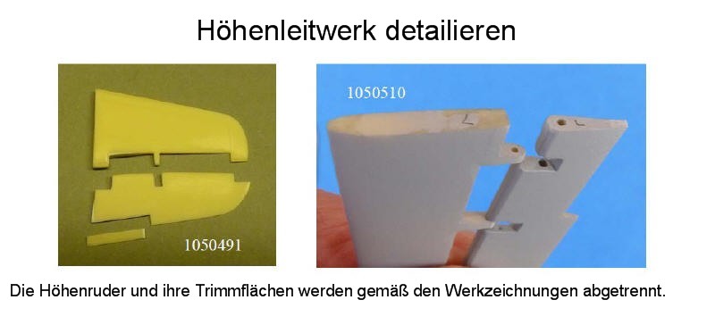 Der Umriss des Seitenleitwerks passt nicht zu Photos (zu hoch und falsch gerundet, Flosse zu lang), er wurde entsprechend massiv korrigiert. Das gilt auch für das Höhenleitwerk.