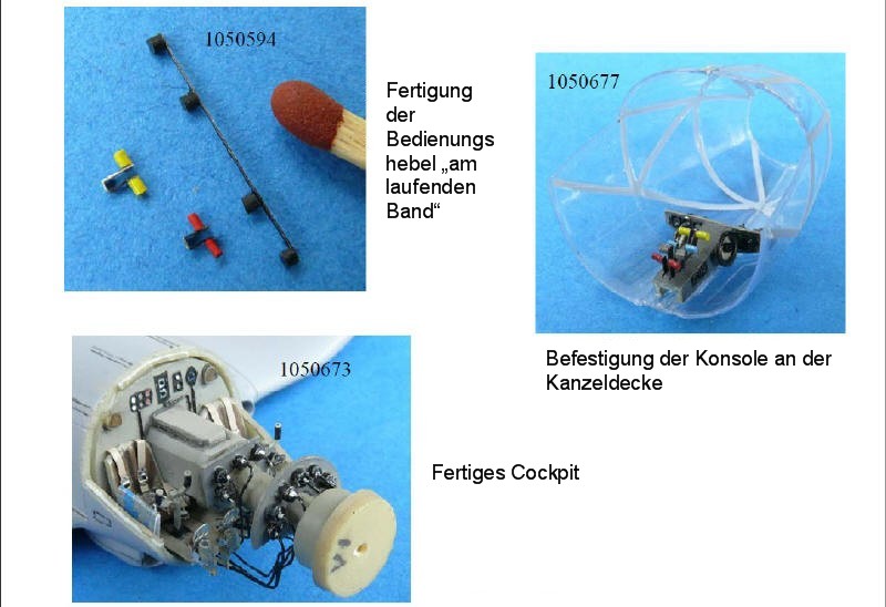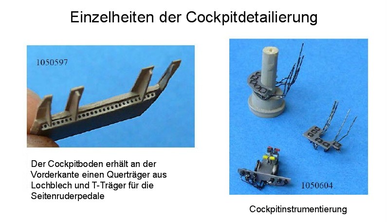Für das Cockpit sieht der Bausatz nur wenige Rundinstrumente vor. Bei der He 111 finden sich 33, bei der He 119 dürften es kaum weniger gewesen sein. Die Frage ist nur, wo man sie unterbringt. Im Prinzip erfolgte die Aufteilung ähnlich wie bei der He 111.