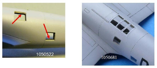 Scheiben bündig mit dem Rumpf abschließen. Rechts die Fenster am fertigen Modell |