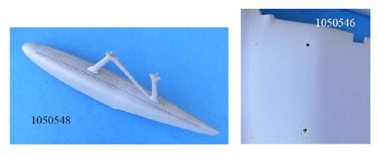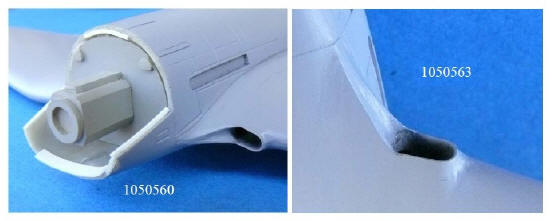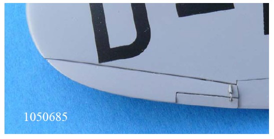 Die He 119 V3 hatte Tragflächen mit gerader Vorderkante, hier stimmt der Bausatz. Die Gravuren sind jedoch falsch wie beim Modell der He 119 V1. Die Lufthutzen in der Tragflächenwurzel, die die Motoren mit Luft versorgen, wurden ent-sprechend Photos korrigiert. Sie unterscheiden ganz wesentlich von den kleineren der V1.