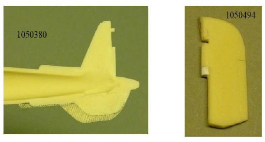 Seitenleitwerk: Der Umriss des Seitenleitwerks stimmt, allerdings passen Ruderbeschläge und Ausgleichsfläche nicht zu Photos. Die Flosse unterhalb des Rumpfes ist zu lang, vorne ist Material wegzunehmen. |