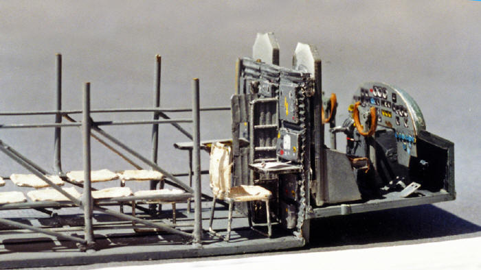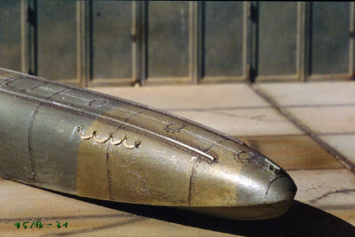Struktur hinter Mittelmotor neu graviert. Schleppantenne, dahinter