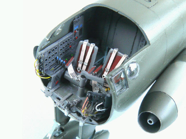 Die Einstiegsluke endet unter dem geschlossenen Boden des Cockpits. Da die Luke geöffnet dargestellt werden sollte, wurde der Kabinenboden entsprechend eingeschnitten. Das gut einsehbare Cockpit wurde ähnlich einer He 177 neu gefertigt, die Instrumente teilweise mit Kabeln ergänzt, die von außen gut zu sehen sind.