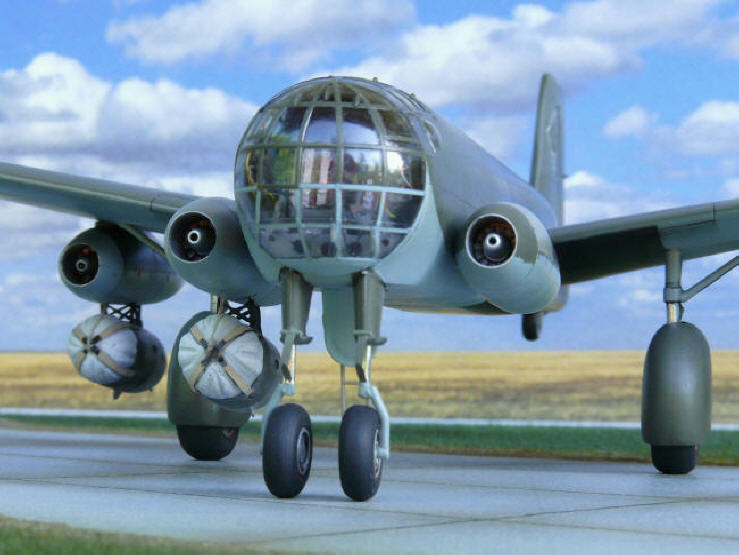 Wer ein Modell dieses futuristisch aussehenden Flugzeugs bauen möchte, könnte auf die Idee kommen, den Rumpf wie beim Original aus den Bausätzen von He 177 und Ju 388 zu stückeln. Diese plausible Überlegung wurde sehr bald verworfen. So blieb nur das Modell von Huma übrig, das schon einige Zeit auf dem Markt ist. Wer gerne teure Bausätze mit der Laubsäge bearbeitet, kann sich hier entfalten.