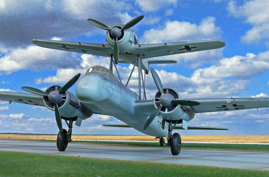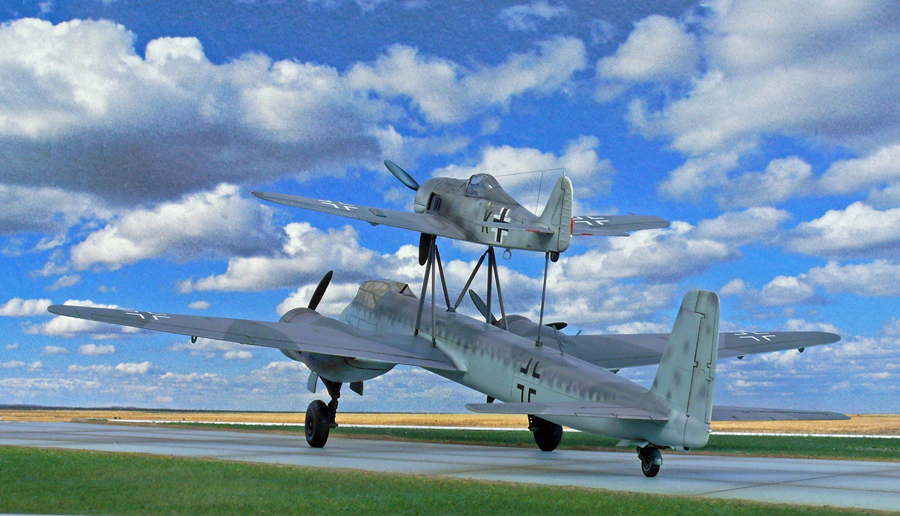 Führungsmaschine Ju 88 H-4 mit aufgesetzter FW 190 F basiert lediglich auf