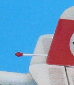 - Bohrung von 0,5 mm Durchmesser im Sporn ganz am Rumpfende unter dem Seitenruder