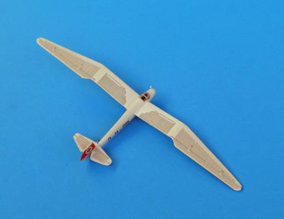 | Segelflugzeuge sehen vor blauem Himmel besonders schön aus. Wenn man blaue Pappe als Hintergrund verwendet, sollte man den störenden Schattenwurf entfernen. |