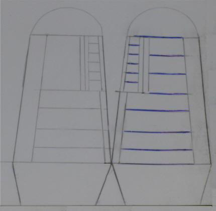 | b) Wellenförmige Durchhänger so mit Kitt/Putty auffüllen, dass eine glatte Oberfläche entsteht bei der die Erhebungen nur eben noch sichtbar sind; nach dem Trocknen fein verschleifen. Da Kitt normalerweise etwas nachschrumpft, bleiben minimale Erhebungen (Rippen) stehen. Ganz wie im Original. |