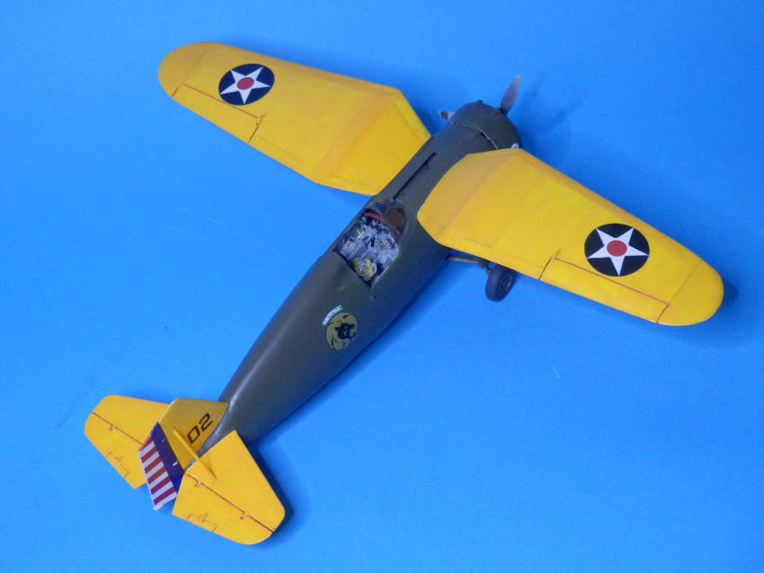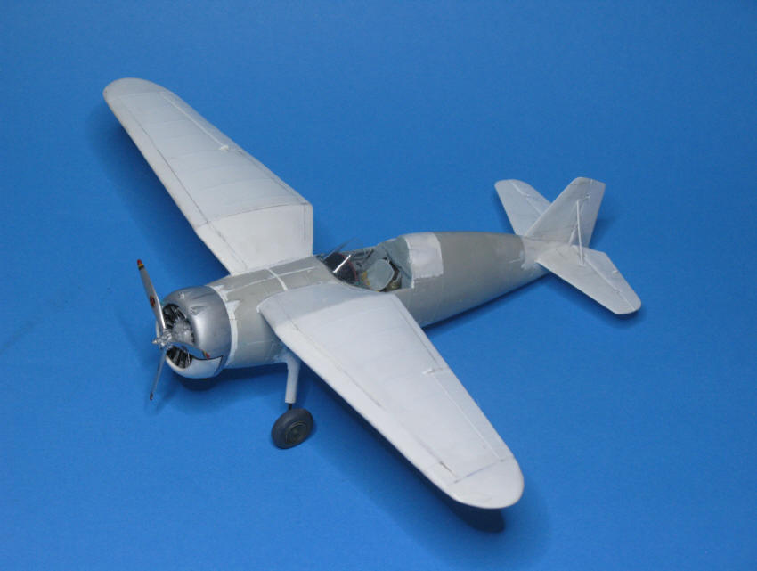 Von dieser nahezu unbekannten Maschine einen Bausatz zu erwarten, ginge sicherlich zu weit. Aber der Rumpf einer 1/48 J2M3 Raiden konnte entsprechend modifiziert eingesetzt werden, Motor, -Haube und Luftschraube kamen von einer F3F-2 von Accurate Miniatures. Der Rest war Eigenbau wobei in diesem Fall der Schwerpunkt auf der Wiedergabe der Bespannung von Tragflächen und Leitwerk lag.