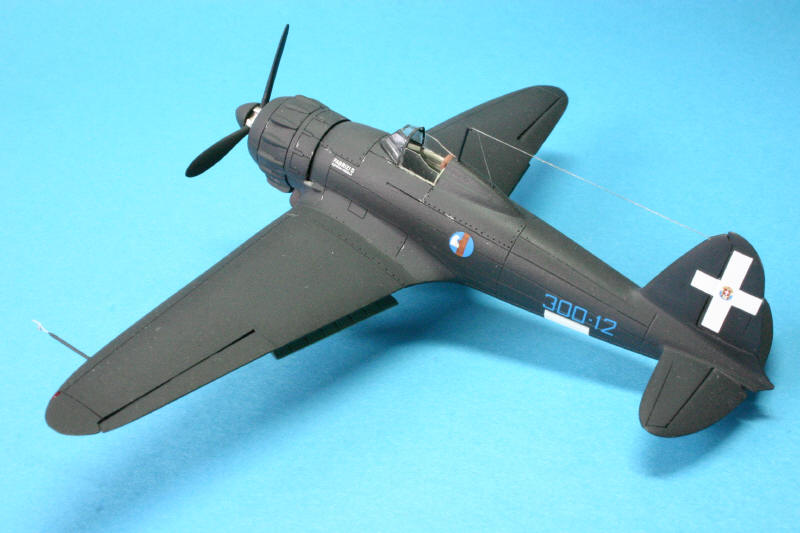 Zum Bausatz: Schwer zu bekommender Resin-Kit ( ich habe ihn im Caproni Museum in Trient bekommen - aber sündhaft teuer! ). Gute Datailierung des Cockpits und allgemein gute Paßgenauigkeit der Resinteile. Aber wie fast alle Resinbausätze nicht allzu leicht zu bauen. Dennoch ein echter Exote in der Sammlervitrine. |