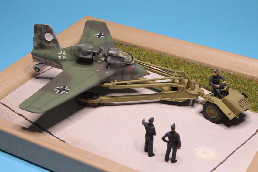 Auch der Doppelsitzer lässt sich problemlos und ohne Schwierigkeiten aus dem Academy Bausatz bauen und ist trotz seines Alters wohl immer noch konkurrenzlos in diesem Maßstab. Nur der Scheuchschlepper bedarf einiges an Nacharbeit. Lackiert wurde mit Gunze Farben H421,H422 und H417. Die Figuren stammen von Preiser. Die Decals sind von Aeromaster, denn Academys Nassschiebebilder sind von keiner guten Qualität. Fazit: günstig, vielseitig und gut! |