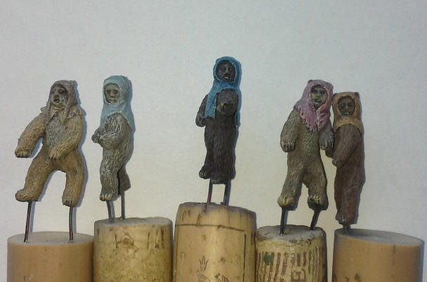 und Spachtelmasse auf. Für die kleineren verwendete ich Schaschlikspieße,
