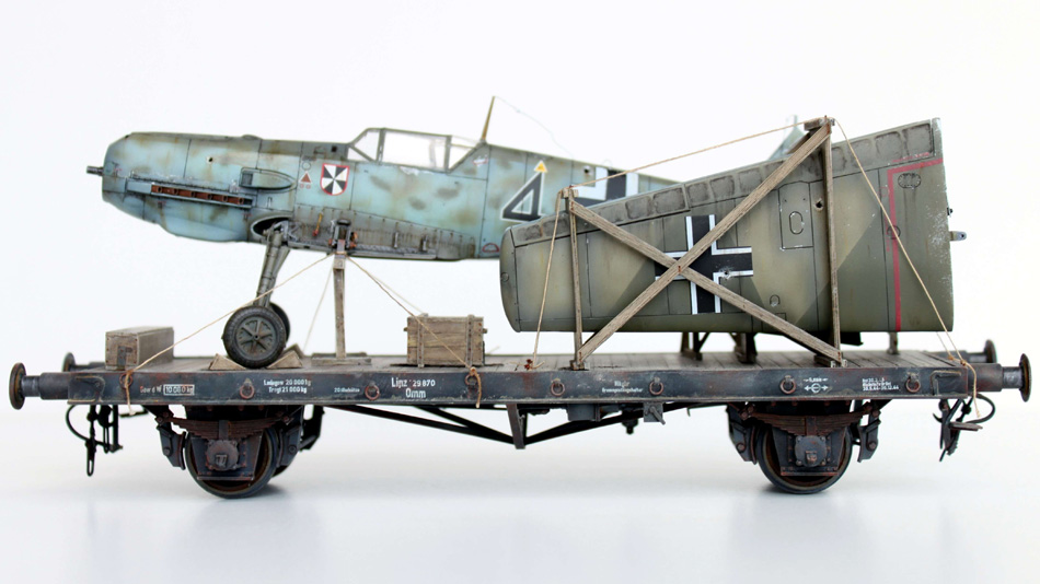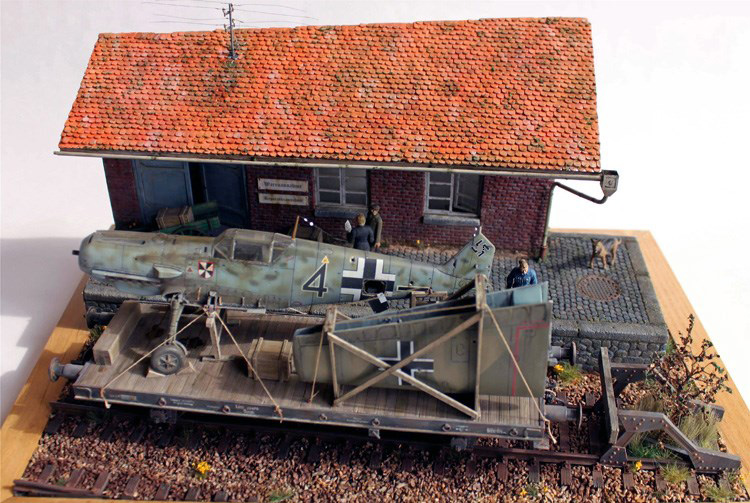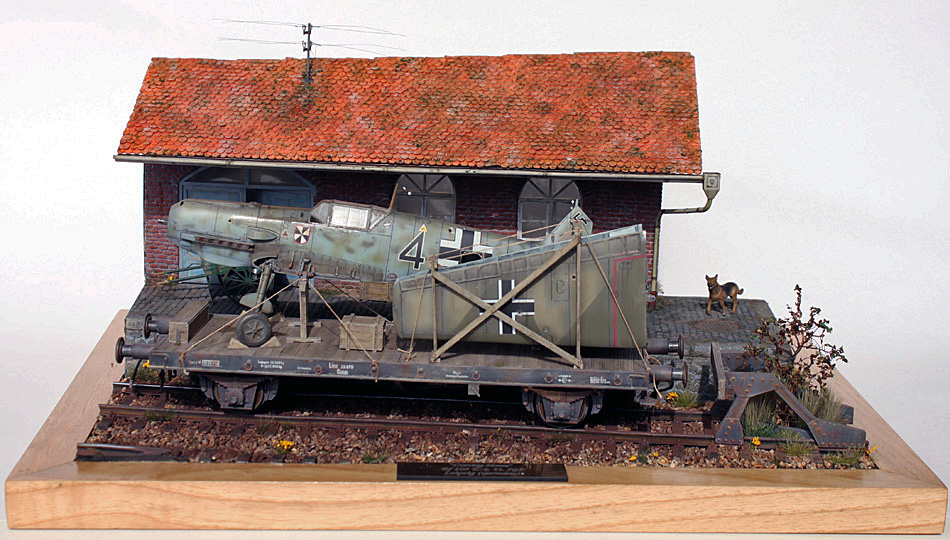 Die Idee zum Bau des Dioramas hatte ich seit ich mir in den 90ern eine Wartungsanleitung der Bf 109 E kaufte. Dort ist auch eine Instruktion für den Eisenbahntransport enthalten.  Das Projekt scheiterte damals an der Verfügbarkeit eines geeigneten Eisenbahnwaggons im benötigten Maßstab. Das änderte sich erst in den 2000ern, als ich beim Stöbern in einem weltweit tätigen Internetauktionshaus bei Verlinden USA das „German Railcar" entdeckte.