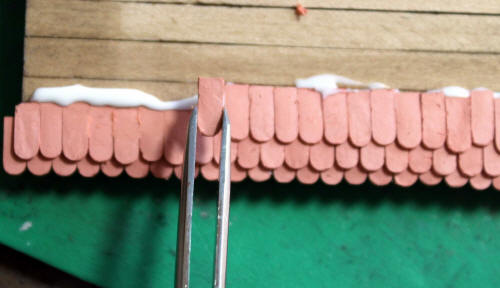 Die Dachziegel wurden selbst aus "FIMO Terrakotta"  hergestellt: