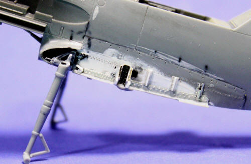 Basierend auf der Wartungsanleitung wurden Skizzen der rumpf- und tragflächenseitigen Anschlussstruktur erstellt und diese aus Styrolplatten und- profilen aufgebaut. Im hinteren Rumpf wurden Reste eines Rüstsatzes von Verlinden verbaut. Die Cockpitverglasung ist von „Clear wax". Ansonsten wurde das Flugzeug aus dem Kasten gebaut.