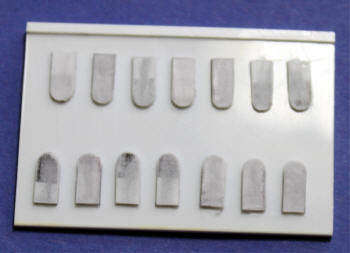 2. Aus Plastikprofilen Positivmodelle der Dachziegeln herstellen und diese auf ein Stück Plastikkarte kleben.
