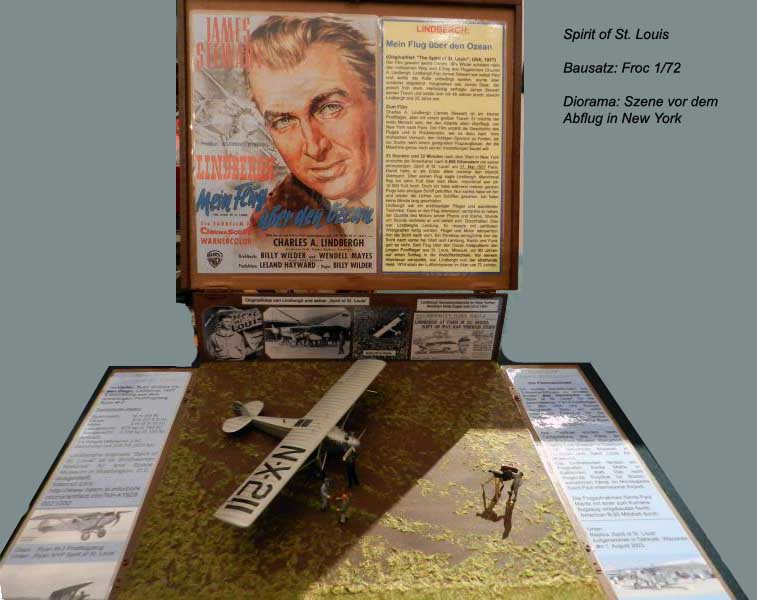 , Erste Atlantiküberquerung im Jahre 1927 durch Charles Lindbergh. Dioramenszene vor dem Abflug in New York.