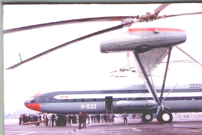 | Größter Transporthubschrauber der Welt. Hob August 1969 44 Tonnen auf 7.398 Fuß. Vier Soloview D-25DF mit je 6.500 PS. Nur zwei Exemplare gebaut. | |