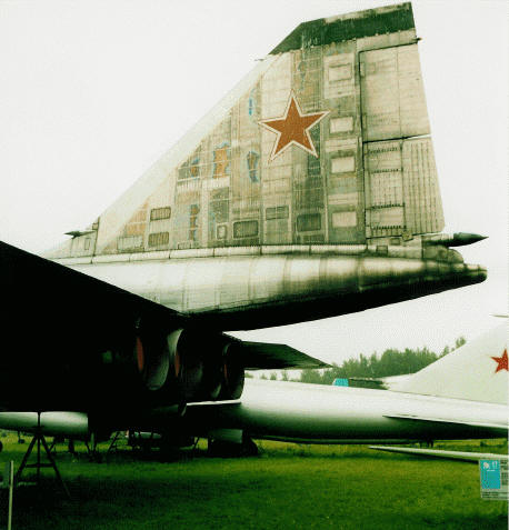 Parallelentwicklung zur XB-70 "Valkyrie", überwiegend aus Stahl und Titan, fly-by-wire-Steuerung mit mechanischer Reserve, Erstflug August 1972, erreichte jedoch mit 4 Kolesov RD 36-41 von je 16.000 kg Schub in 10 Flügen nur Mach 1.3. Drei Exemplare gebaut, zwei verschrottet. Vorwärtssicht im Flug durch Periskop. |