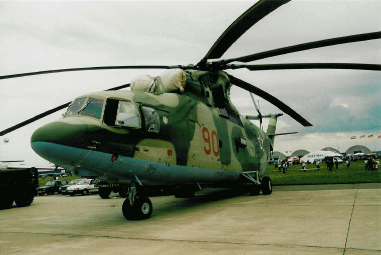 Größter in Seria gefertigter Lastenhubschrauber, 8-Blatt-Rotor, 2 Lotarev D-136 mit je 11.400 Wellen-PS |