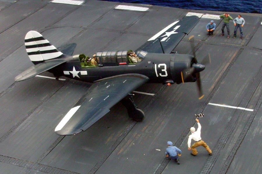 Hat eine Wildcat, Hellcat, Corsair oder Avenger eine geometrische Markierung am Seitenleitwerk (siehe Markierungen der US Navy II), war sie auf einem Flugzeugträger stationiert und nicht auf einer Südseeinsel. Flugzeugträger operierten vorzugsweise im Mittel- und Nordpazifik. Inseln, die für eine Notlandung in Frage kamen, waren japanisch besetzt. - Hingegen waren F4U Corsair in Dreifarbenanstrich nur auf eroberten Atollen und nicht auf Flugzeugträgern stationiert.